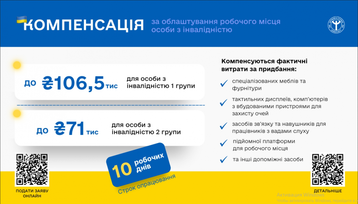 Отримати компенсацію можуть ФОП або юрособи, які облаштували робоче місце для особи з інвалідністю. Дата працевлаштування людини з інвалідністю має бути не раніше, ніж за 90 днів до дня подання заяви. Особа з інвалідністю на дату працевлаштування має бути застрахованою. Компенсацію не отримає роботодавець, на якого особа працювала протягом 180 днів перед актуальною датою працевлаштування або до 29.08.2023.