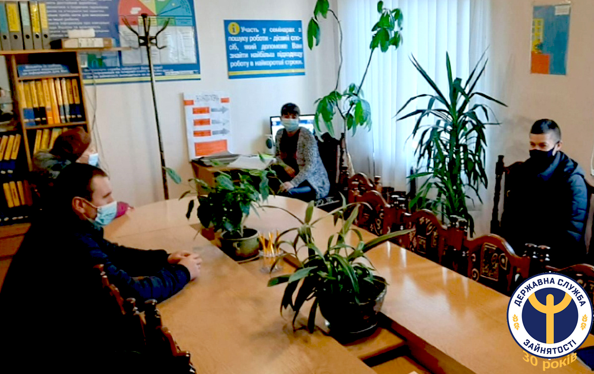 Фахівець з профорієнтації ознайомила присутніх з широким спектром послуг державної служби зайнятості та сучасними підходами щодо їх отримання, електронними сервісами державної служби зайнятості та розповіла про стан регіонального ринку праці. Вона також наголосила, що головним принципом роботи служби зайнятості є індивідуалізований підхід до кожної людини та надання максимальної допомоги у працевлаштуванні, а метою є максимальна допомога людям, які звернулися до служби зайнятості.